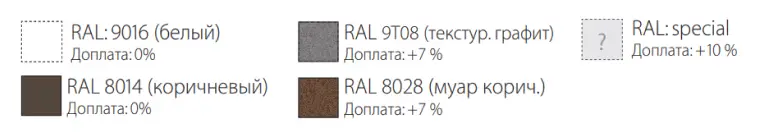 Опционально Электродвигатель с дистанционным управлением, солнечно ветровая автоматика, изменение категории ткани, изменение цвета корпуса