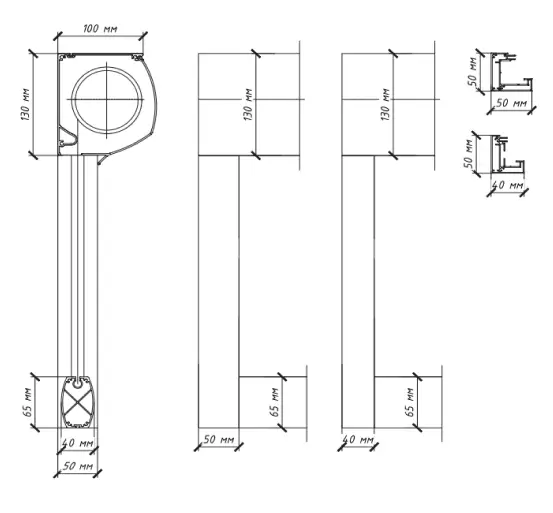 Размер короба 100 мм. 130 мм.